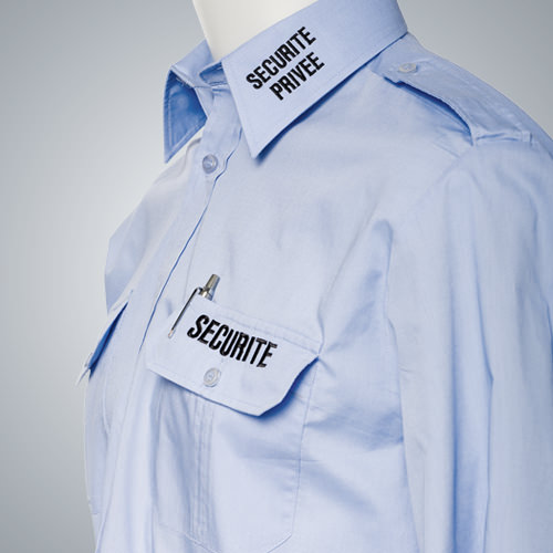 Chemise bleu ciel – Sécurité sur col – Vêtement professionnel pour hiver – Agent de sécurité Tunisie. Vêtement professionnel de travail sur mesure.